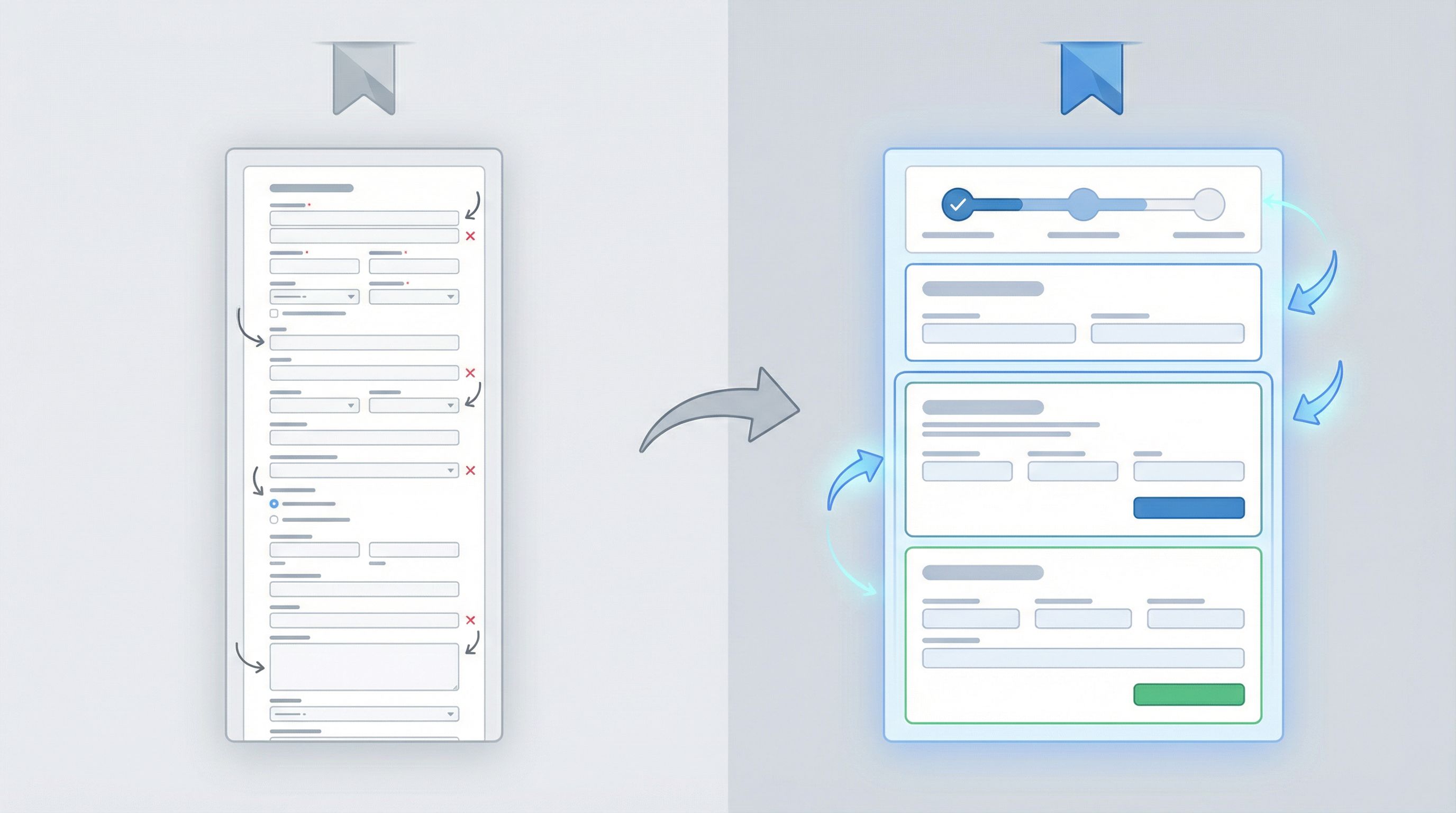 - [ ] Long forms split into logical steps with progress