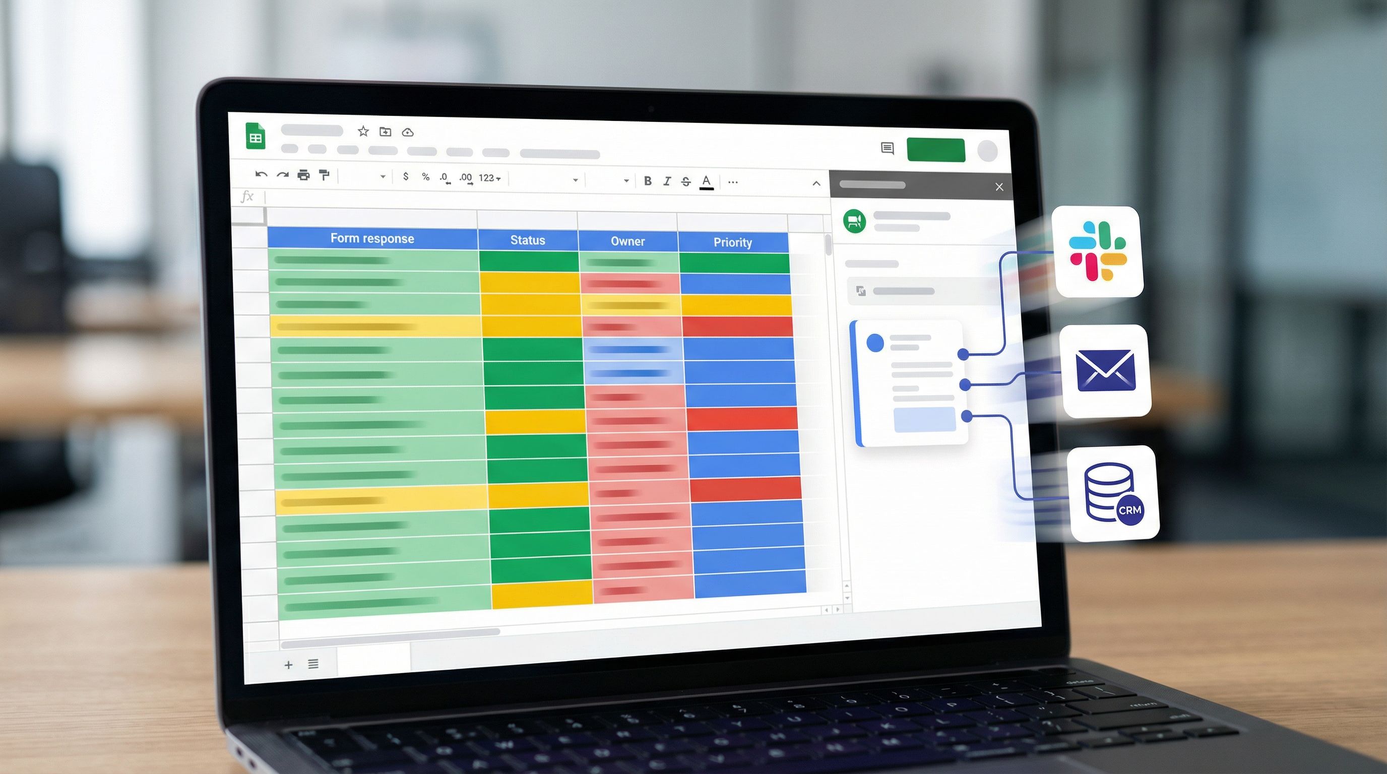 - Use Apps Script or no-code tools to turn rows into Slack messages, tickets, CRM records, and more